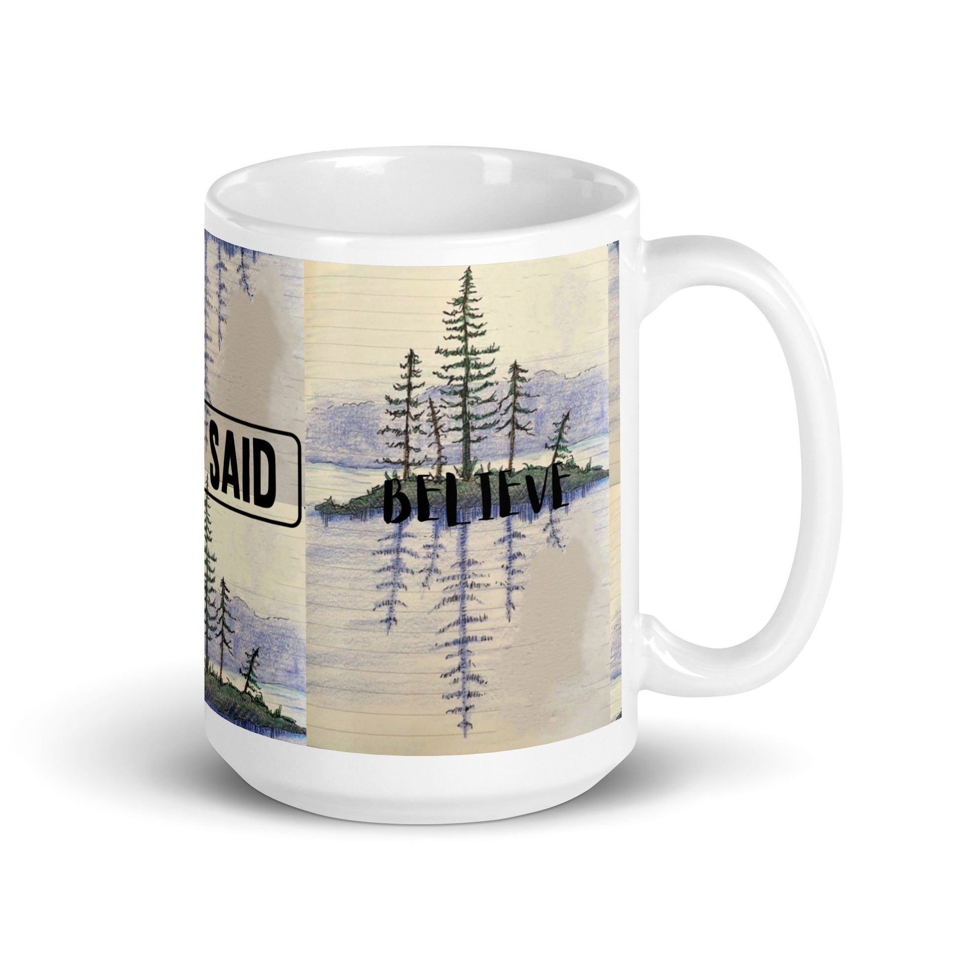 God Said "Believe" White glossy mug